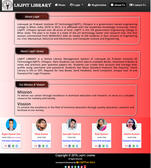 - The titled LNJPITians Library" is an online library management system, which objective is developing a computerized system to maintain all the daily works of the library.