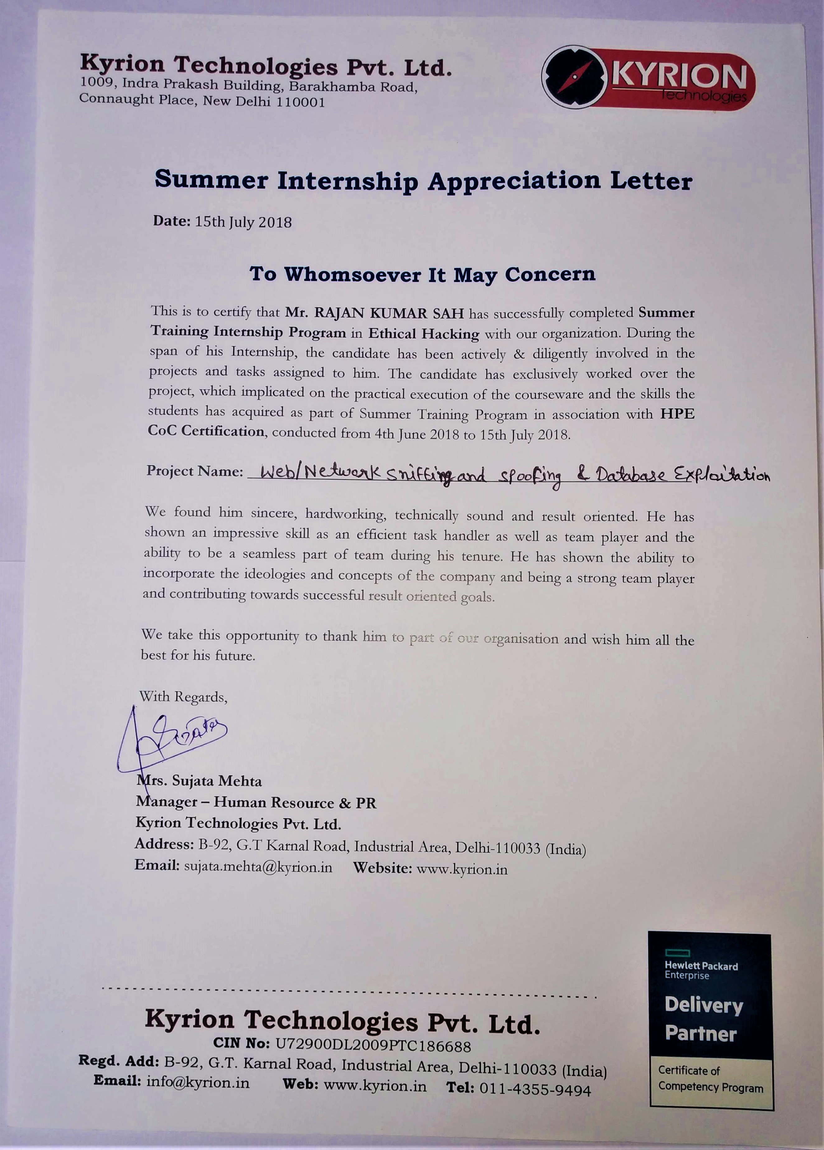 - Four weak Internship on "Secretariat Local Area Network (SeCLAN)" Project would aim to provide a reliable, integrated, and robust telecommunications infrastructure catering to high speed, high capacity, and secured delivery of voice, and data transmissions.